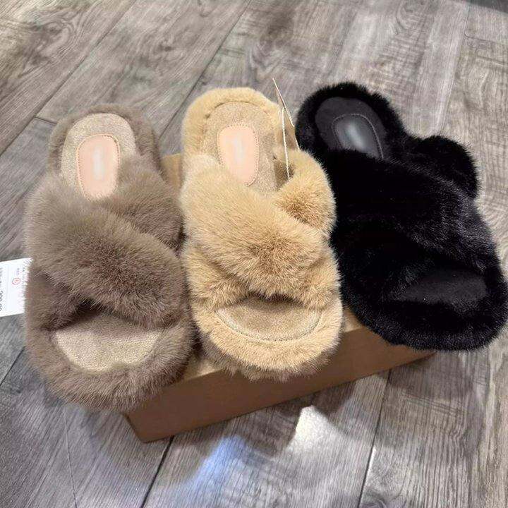 淡季清仓~ 36码!冬季厚底毛拖鞋外穿,防滑,可爱的懒人长毛绒平底拖鞋