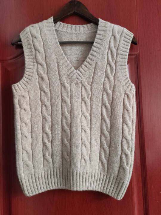 羊毛绒套头短款V领麻花女背心,手工机织5针加厚可定制毛衣背心