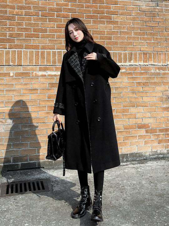 赫本风毛呢大衣女中长款2025年新款冬季加厚韩版宽松黑色呢子外套