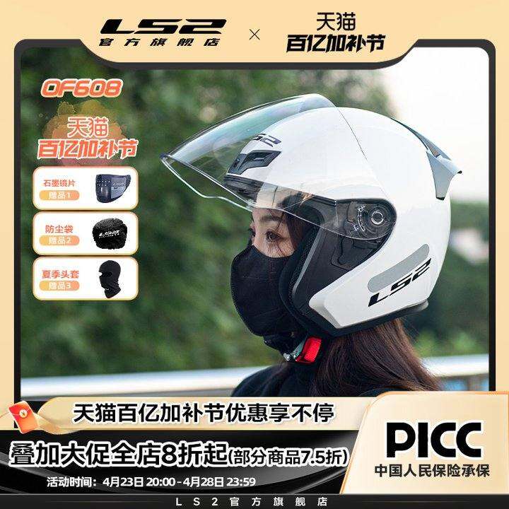 LS2夏季摩托车半盔大码男女士通勤电动车头盔踏板4分之三盔OF608