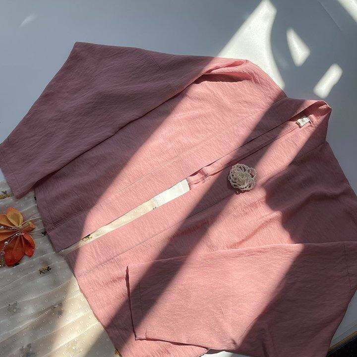 最近买了几件汉服飞机袖,这款买了粉色,是不挑皮肤的粉,平时当防晒衫穿也很nice,价格也是超级香
