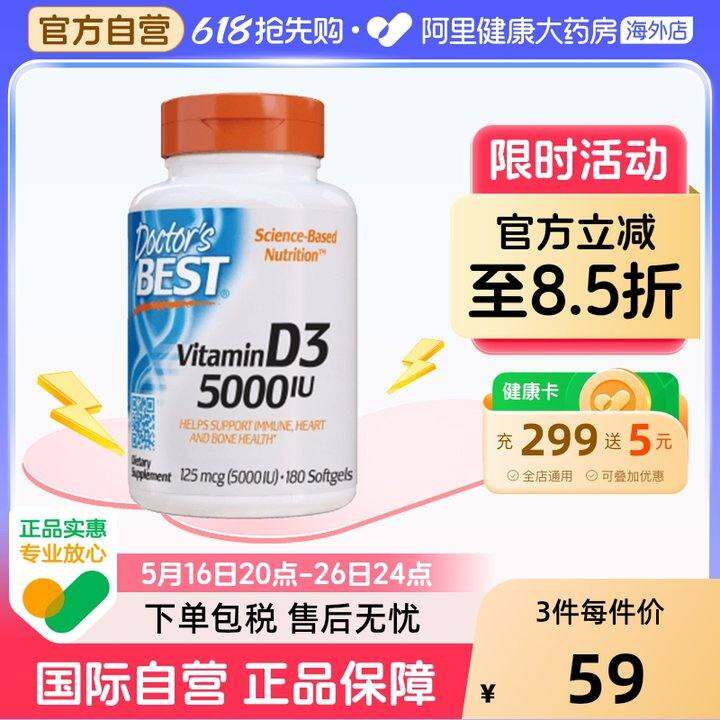 金达威多特倍斯维生素D3180粒VD成人促进钙吸收补钙多效吸收d3