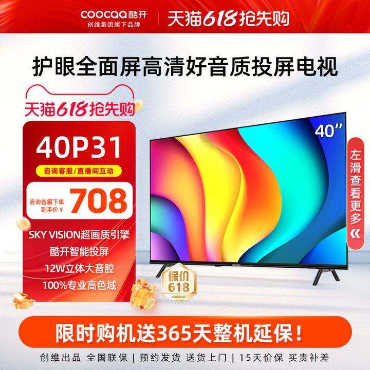 创维酷开P31 40英寸高清家用电视机液晶屏幕彩电官方旗舰店正品