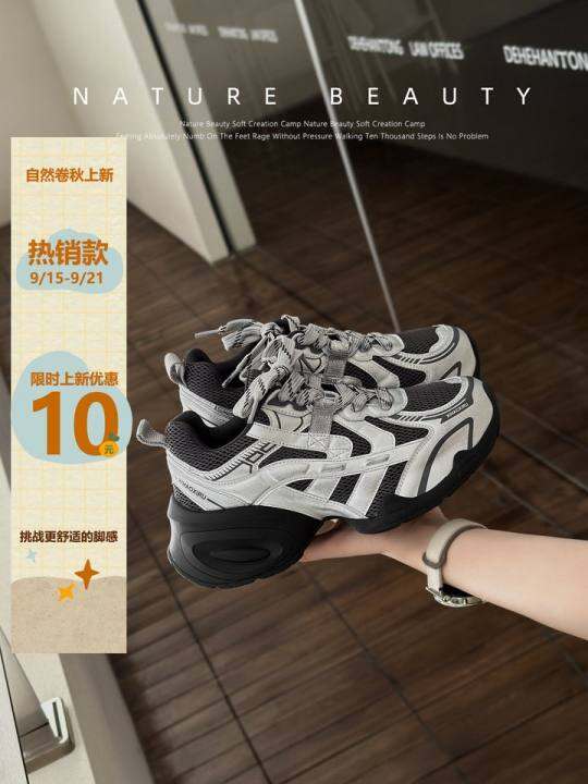 自然卷复古运动老爹鞋厚底增高小个子做旧擦色秋季新款网面休闲鞋