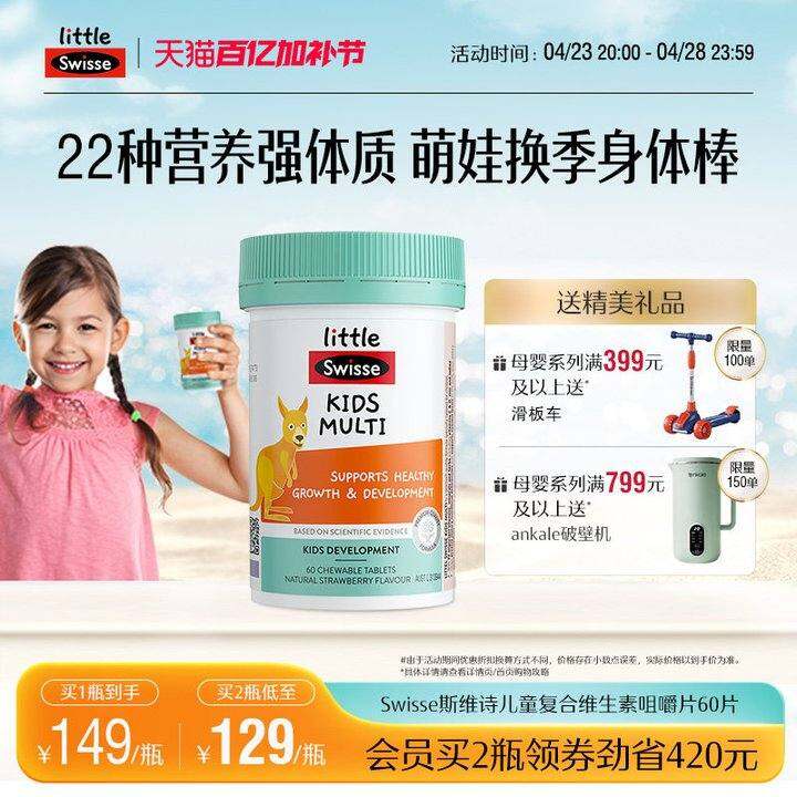 给我妹买的,也不知道是不是智商税,反正买来试一下。Swisse斯维诗儿童复合维生素b族维c多种微量元素维c咀嚼片多维锌*2瓶