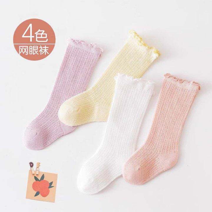婴儿袜子0一3月6春夏季薄款儿童纯色女宝宝棉袜新生儿防蚊中筒袜