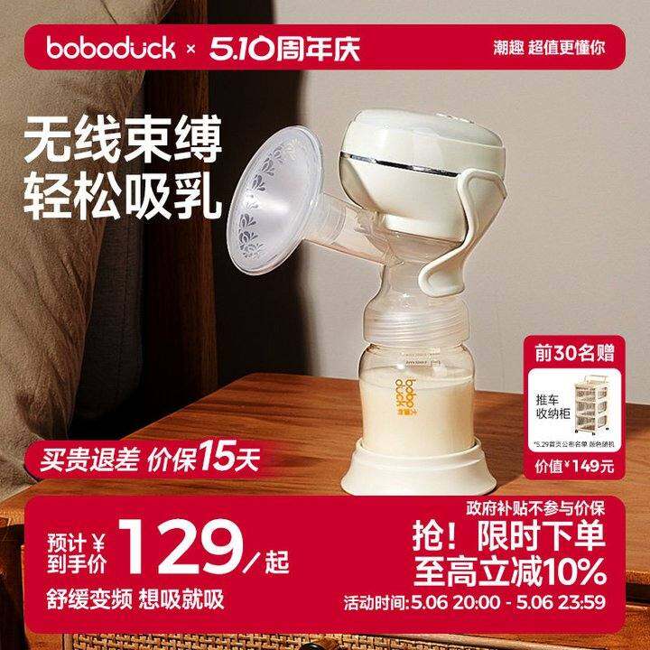 大嘴鸭免手扶单边便携电动吸奶器舒缓吸乳德国PPSU改善乳头内陷 大嘴鸭电动吸奶器 边震边吸小夜灯