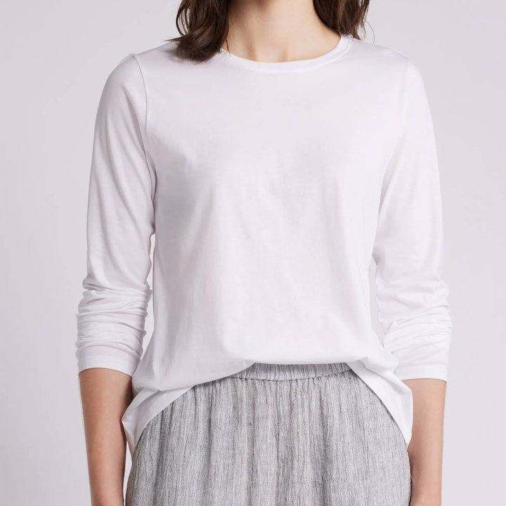 现货EF女士T恤长袖圆领100%长绒棉有机棉匹马棉基本款宽松丝滑