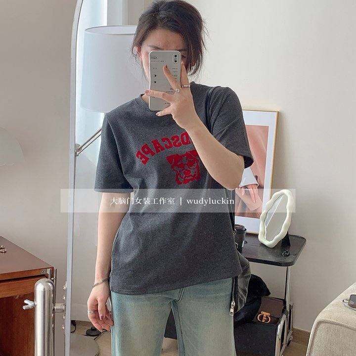 大脑门 【轻松周末】美式复古撞色字母短袖T恤宽松打底衫女J25037