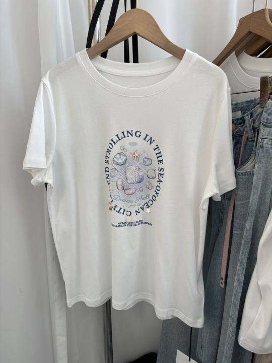 实拍现货2025夏季新款全棉液氨常规款超细精梳棉正肩贝壳短袖T恤