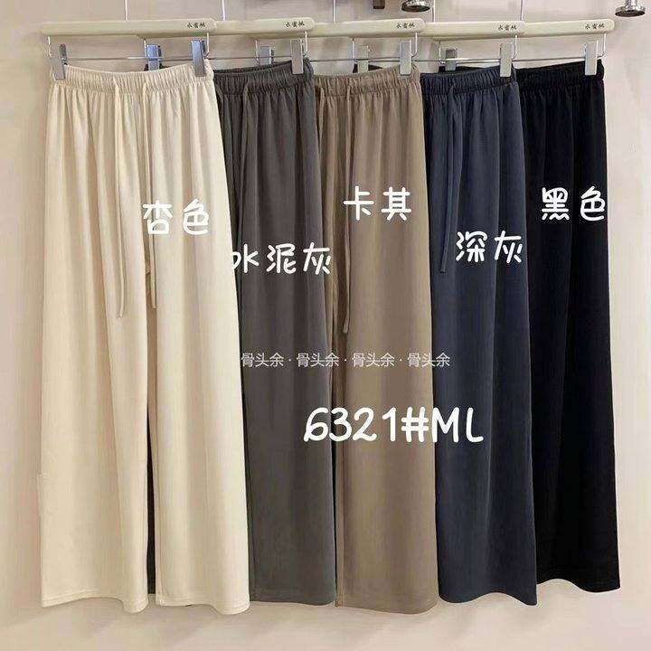 水蜜桃6321松紧腰铜氨丝阔腿裤女春季宽松显瘦百搭休闲直筒长裤