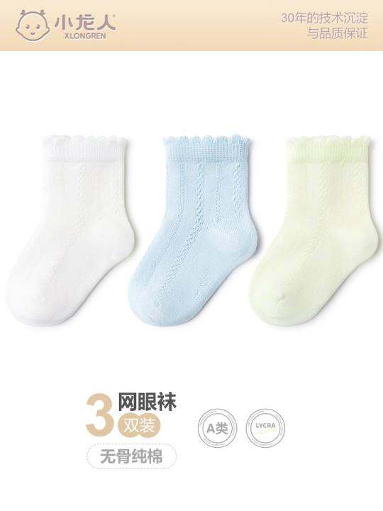 小龙仁无骨新生婴儿袜夏季薄网棉夏季中筒纯棉男女童袜