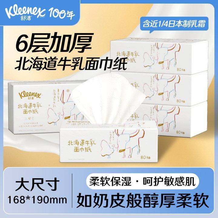 舒洁牛乳纸80抽*5包6层鼻子纸婴儿用保湿纸巾