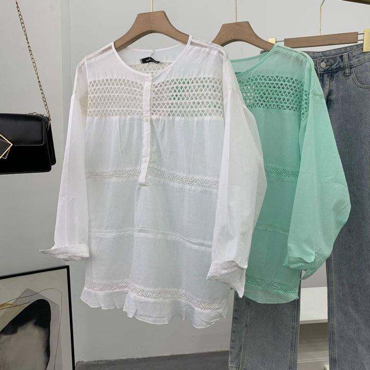 【楠】衬衫长袖夏季新款纯色镂空设计宽松气质百搭上衣G#26