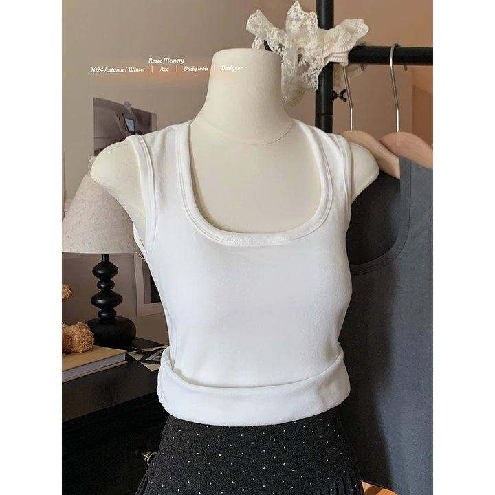 10/9直播~德绒带胸垫背心2024秋季新款方领内搭保暖打底衫吊带衫