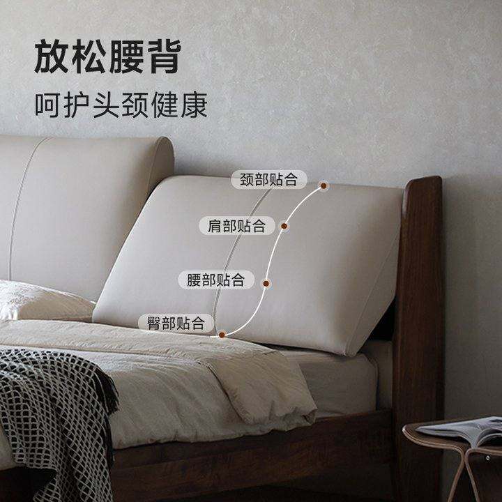 朴愫木作轻奢实木床黑胡桃木真皮床多功能可调节软包双人主卧大床
