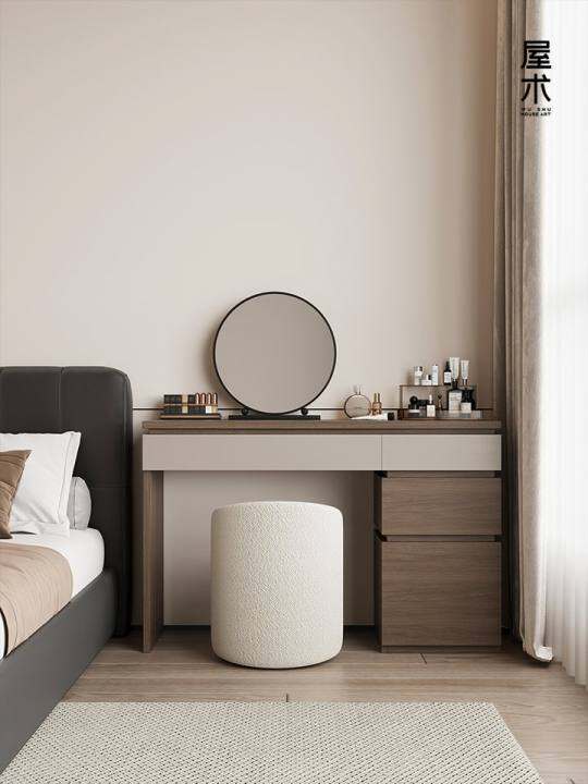 屋术意式极简梳妆台收纳柜一体实木胡桃木小型书桌卧室化妆桌定制