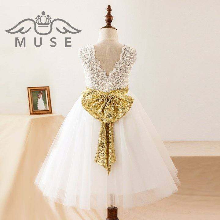 MUSE花童礼服女儿童婚纱裙女童礼服短裙网纱蕾丝裙演出服春秋