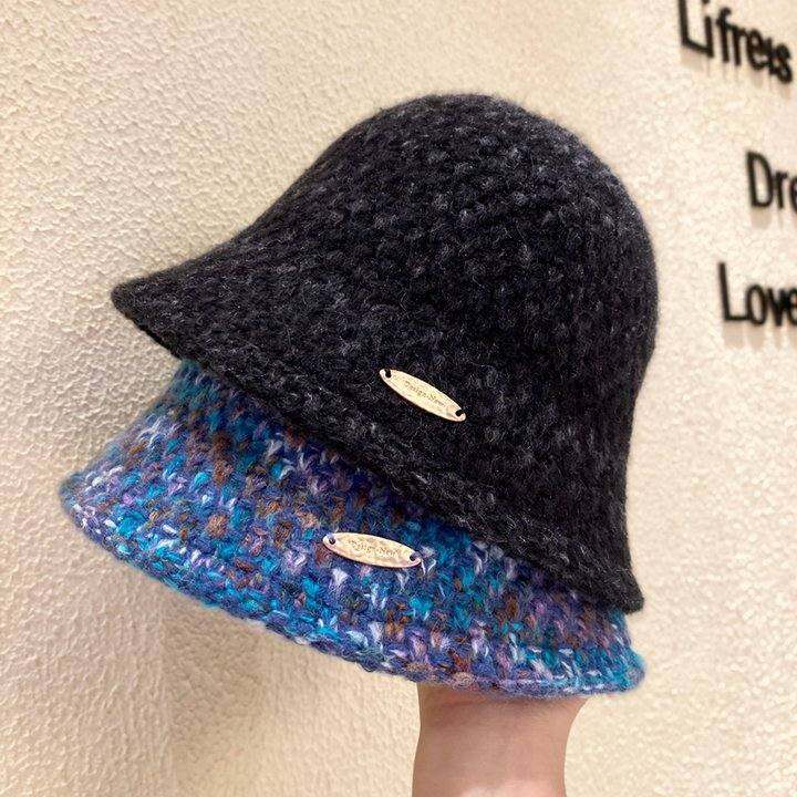 小香风格针织渔夫帽女秋冬韩版百搭显脸小水桶帽时尚开叉毛线盆帽