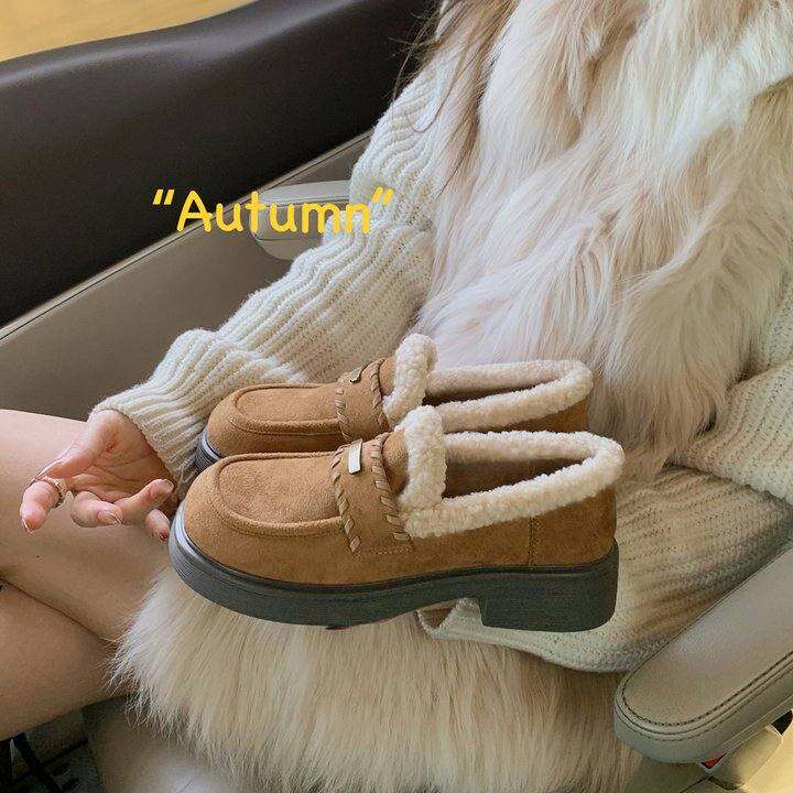 葡萄妈studiolee 增高4cm~ 懒人加绒方圆头编织一脚蹬毛毛乐福鞋