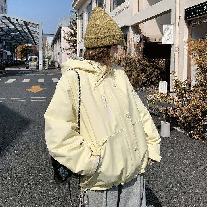 浅黄色连帽冲锋衣90白鸭绒羽绒内胆两件套女2025新款加厚冬季外套