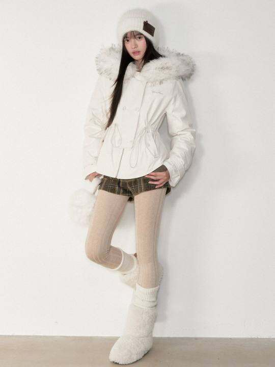 Soote Season 原创韩系大毛领掐腰双排扣收腰保暖派克羽绒服外套