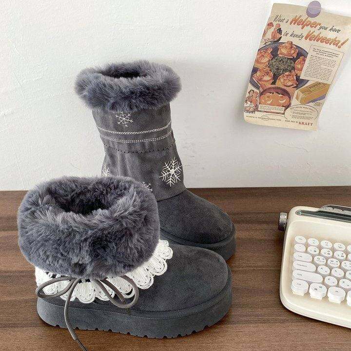 喜叔可拆卸两穿灰色毛绒雪地靴女2025新款冬季保暖加绒加厚棉鞋子
