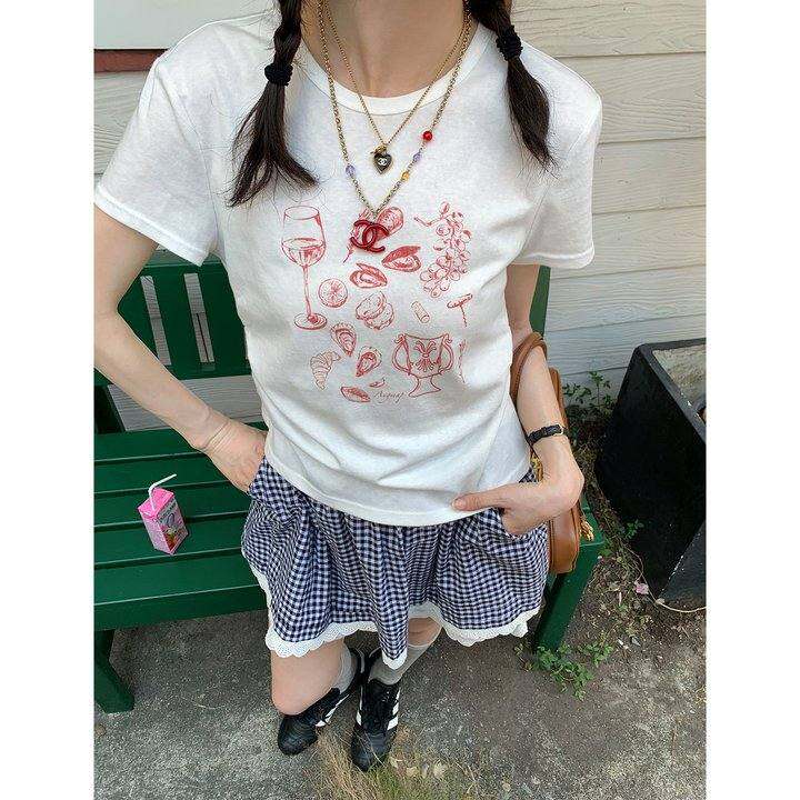 浮生八记“巴黎艺术家”竹节纹抽褶海洋植物度假感复古印花短袖T