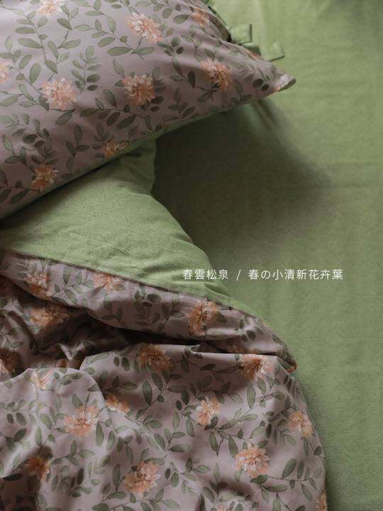 小米馍馍|春云松泉 100纯棉新款绑带枕套复古风床单被套三四件套