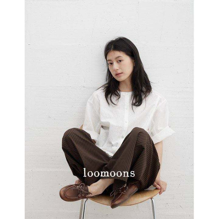 loomoons “海盐白”立裁分割中袖系带贝壳扣小衫