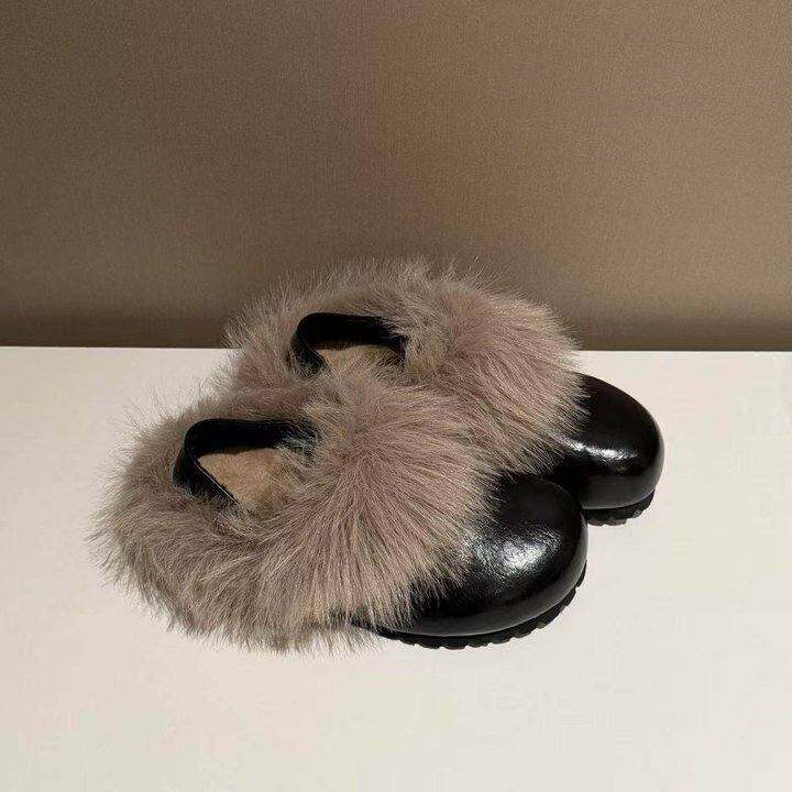 H55女鞋斯拉夫式2025冬季新款两穿百搭单鞋一脚蹬毛毛鞋博肯鞋