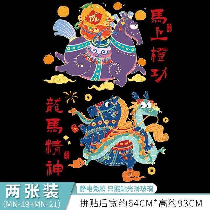2026新年春节马年橱窗玻璃门窗户贴纸静电墙贴窗花商铺节日布置
