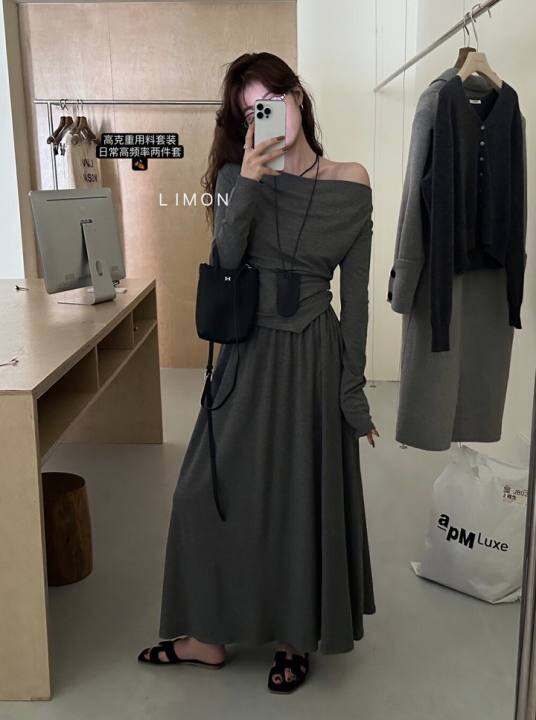 THE LEMON秋季2024新款韩系不规则长袖收腰T恤+高腰垂感半身裙女