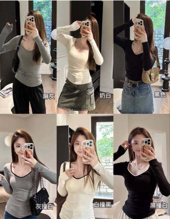 新品欧戴斯8766抗菌羊绒法式赫本领单衣百搭打底衫长袖修身背心