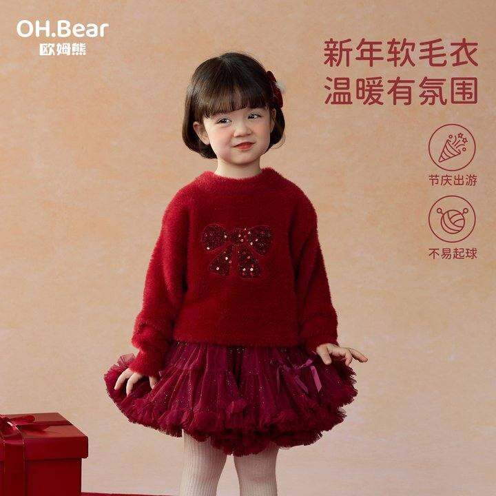 女童厚红色毛线衣2025新款冬女宝宝针织衫冬季上衣儿童冬装打底衫