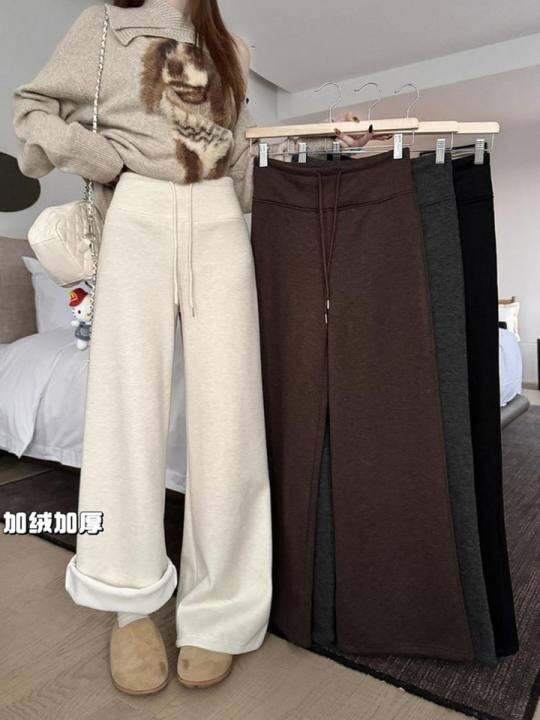 2025秋冬新款慵懒风宽松百搭高腰加绒加厚直筒裤垂感拖地休闲裤女