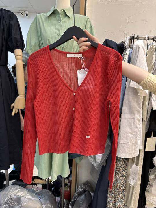 韩系新款夏季新款防晒冰丝针织开衫纯色修身显瘦薄款百搭V领小衫