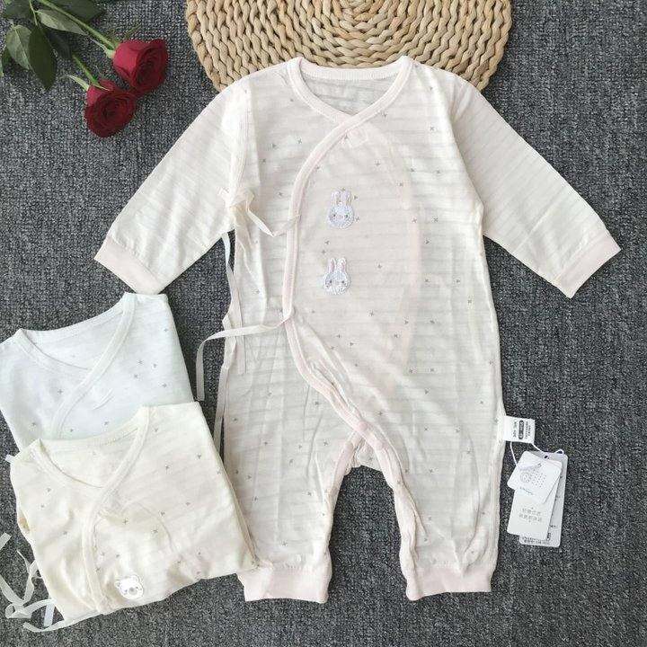 新生儿连体衣斜襟系带护肚蝴蝶衣宝宝长袖爬服内衣婴儿衣服春秋冬