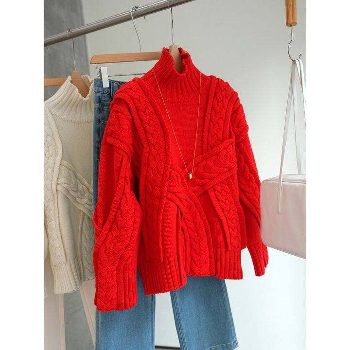 现货告别5折 加厚2.3斤1OO%羊毛~重工绞花高领毛衣女〔NYZH166