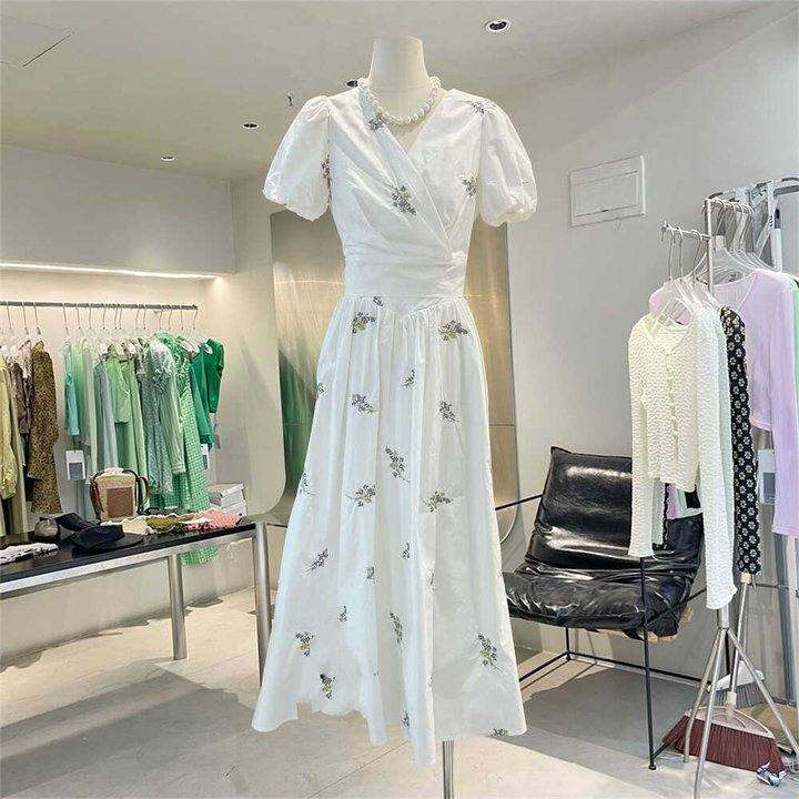 温柔风法式刺绣时尚套装裙女十三行夏季泡泡袖绑带衬衣半身裙