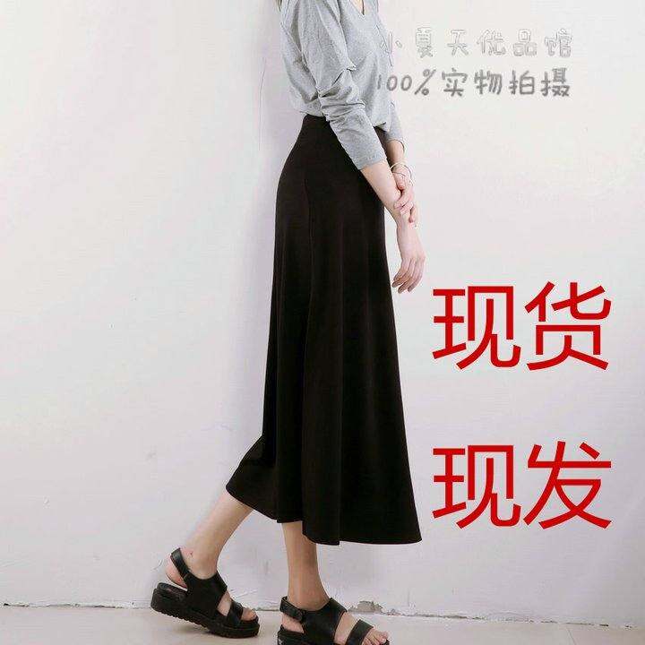2023新款春夏黑色长款半身裙长裙小A字裙定制女装高腰松紧罗马棉