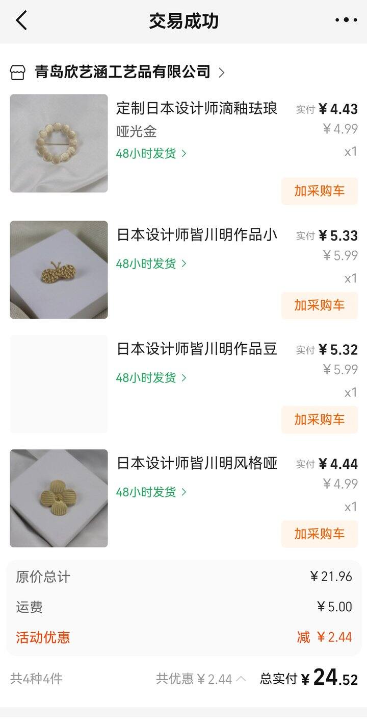 整理旧物时发现21年初1688买的胸针现在依旧完好,一点氧化和变旧的痕迹都没有,恰好链接也没有下架,这类胸针搭配衣服、布包或者围巾都8错的!特来分享!