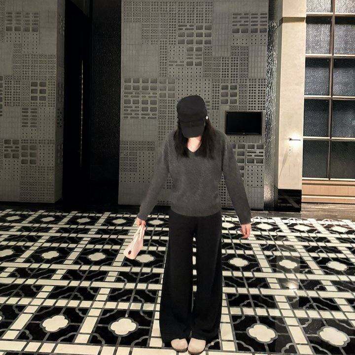 Eu dai Monia 秋冬bi入高克重深灰浅灰质感遮胯显瘦针织羊毛裤