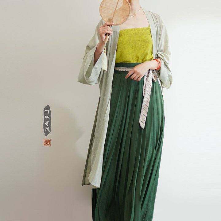 【竹林寻风】赵氏汉服天丝夏宋制汉服折领长衫粽叶绿百迭裙百褶裙