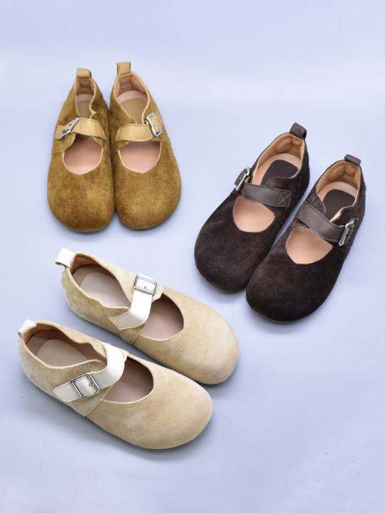 软底覆古圆头玛丽珍女鞋2025秋季牛皮内增高单鞋文艺一脚蹬小皮鞋
