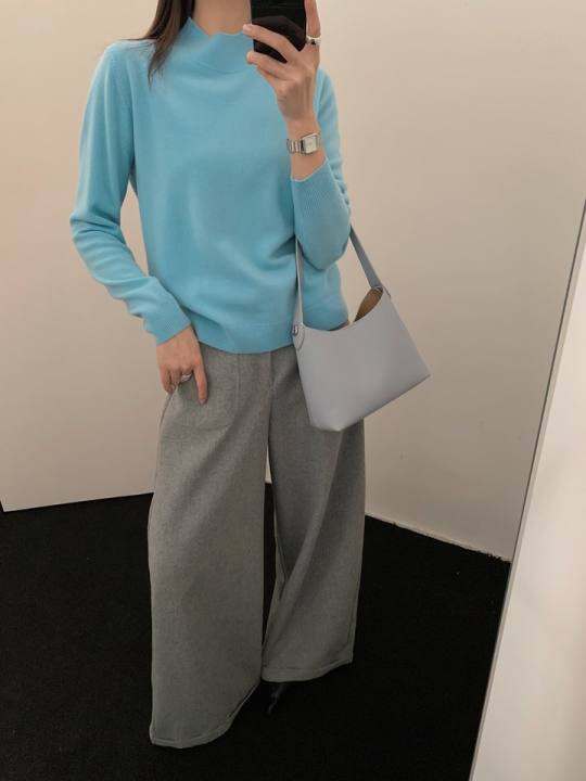 女士全羊毛基础款圆领半高领打底衫长袖针织毛衣
