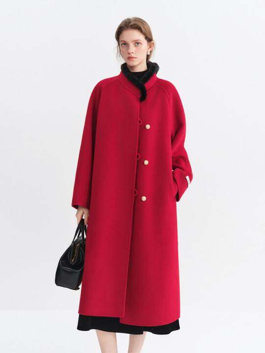 新中式白色毛呢大衣外套女2025冬新款浪漫立领大衣4193