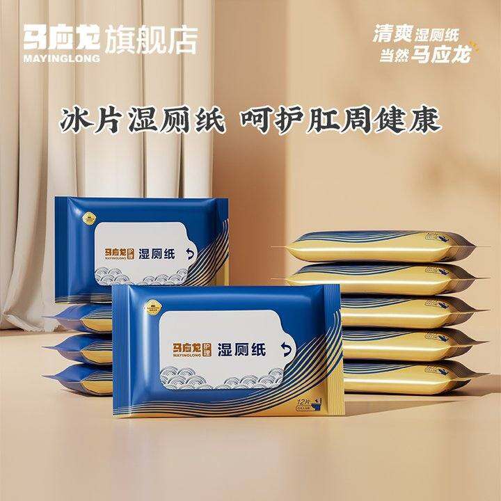 马应龙冰片湿厕纸可冲散擦屁屁清洁PP便携湿巾12片装10包