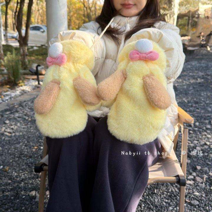 【奶黄包】可爱饼饼手套可挂脖毛绒冬季保暖加绒加厚包指户外学生