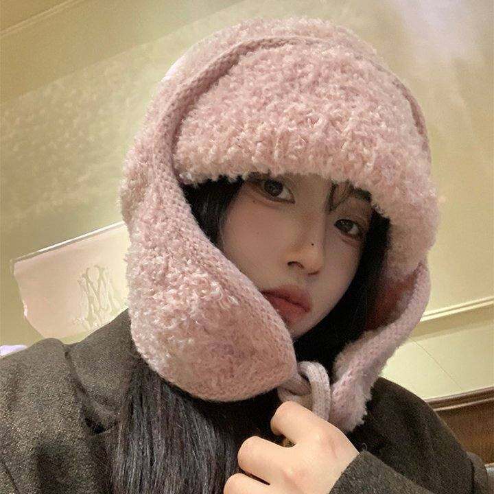 韩系氛围感羊羔毛雷锋帽女冬季加厚保暖防寒针织护耳帽飞行帽子潮